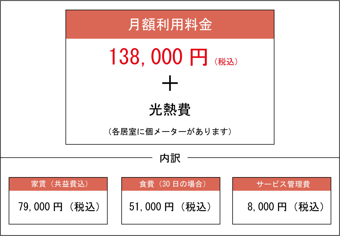 ※ 上記の値段は1ヶ月の目安です。実際にはケアプランに基づいた利用料金となります。
